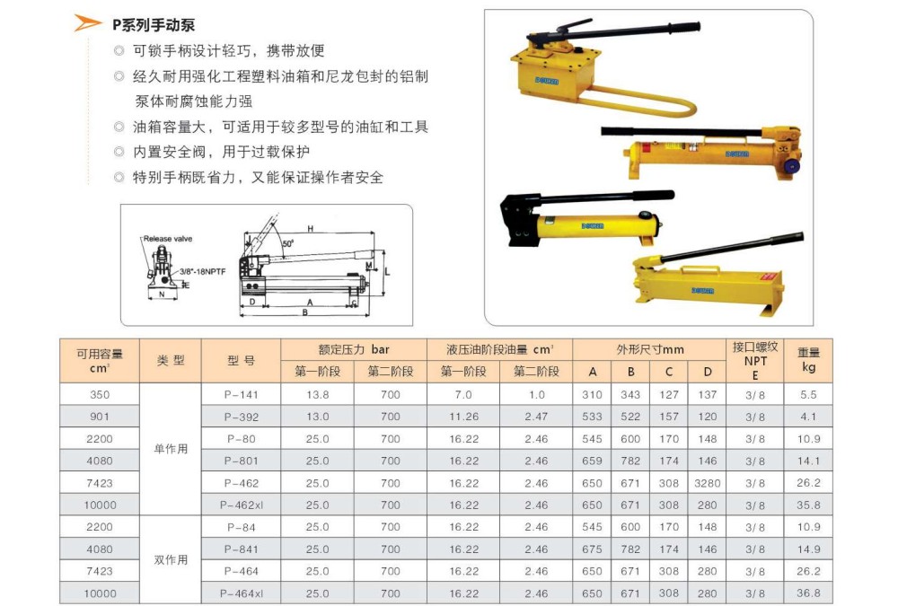 3、油箱容量大,可適用于較多型號(hào)的油缸和工具