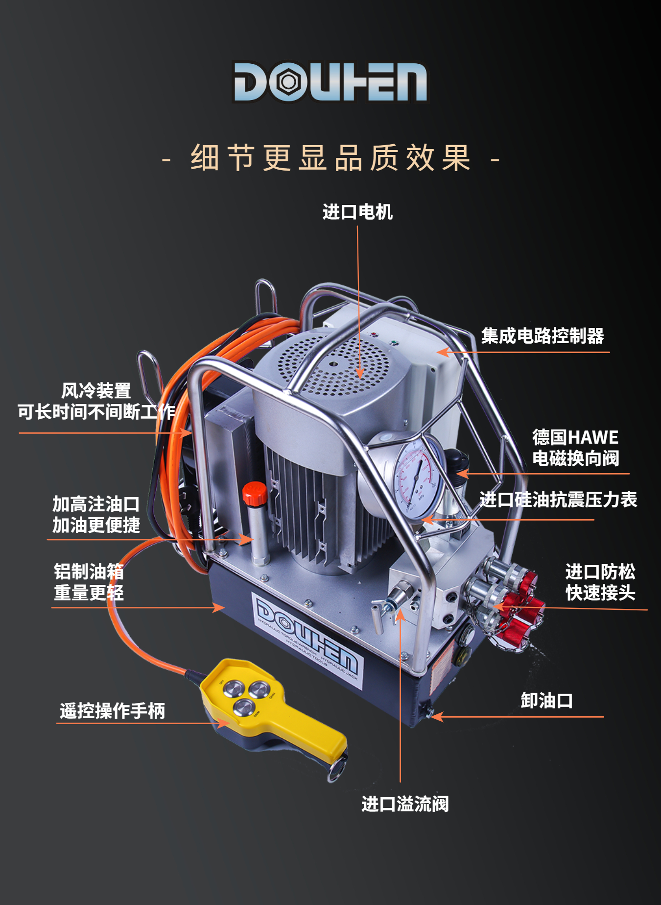 1、液壓扳手用泵,1.1Kw無碳刷交流電機,功率大,免維護,壽命長,能長時間連續工作;