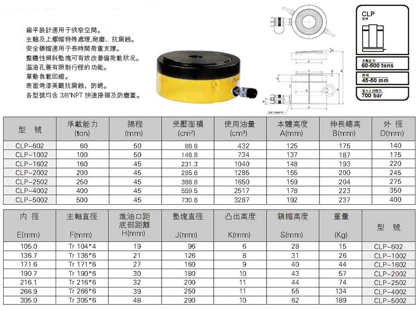 1、薄型設計用于標準油缸無法使用的狹小空間