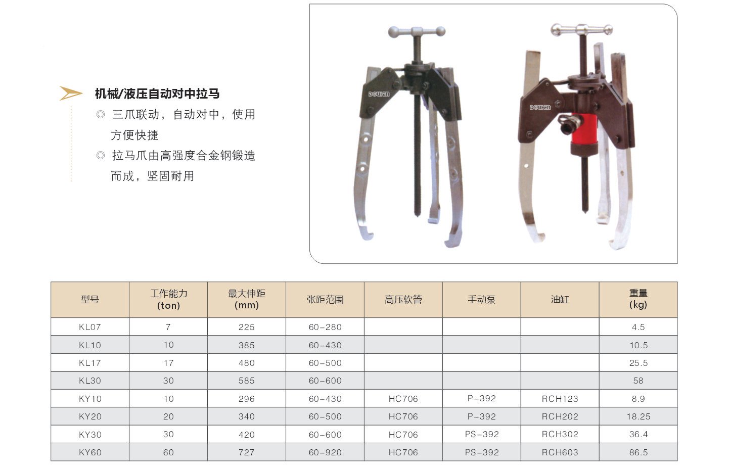 • KL/KY系列機械/液壓自動對中拉馬